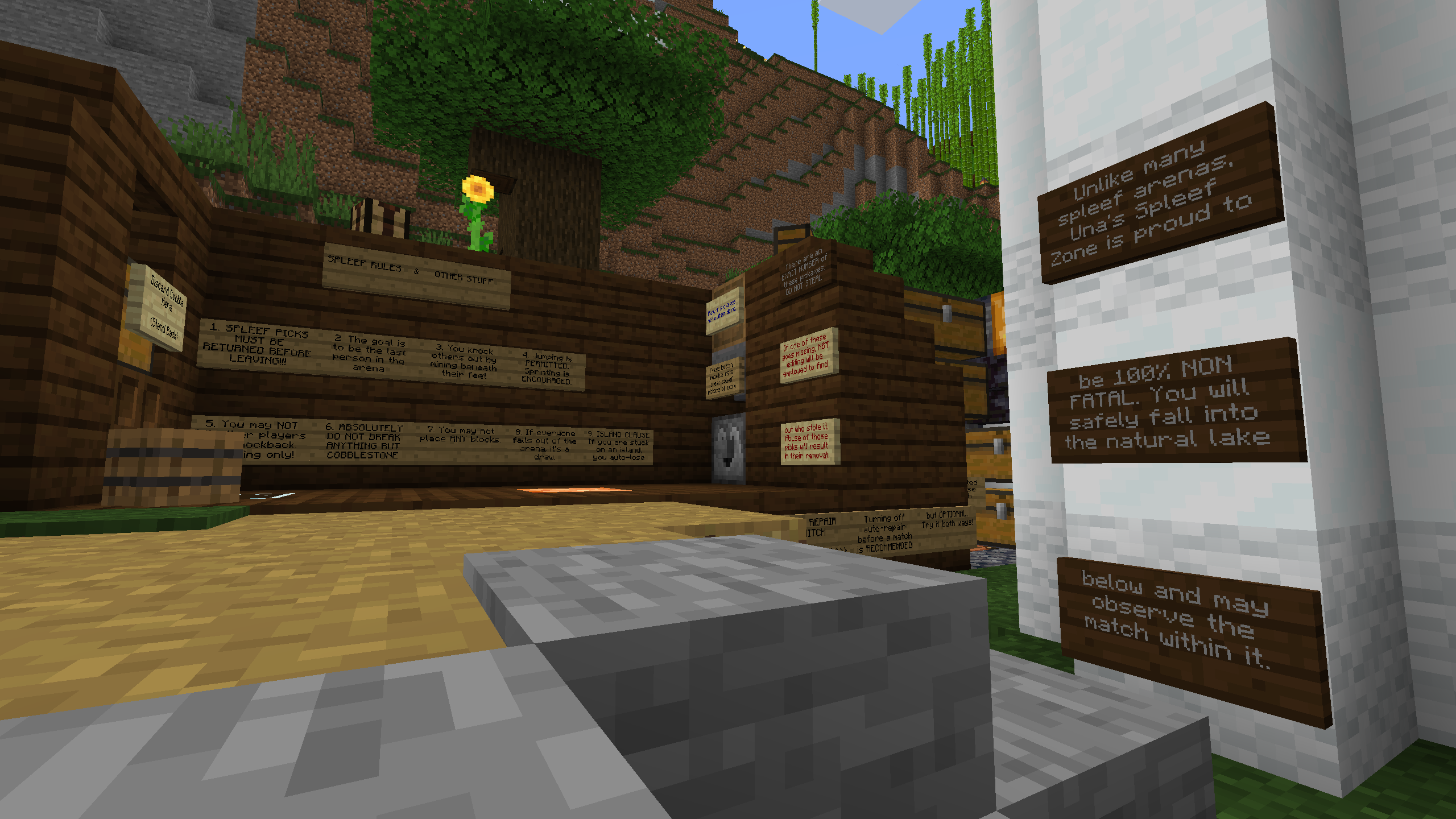 The rules area of Una's Spleef Zone, a survival self-regenerating spleef arena.